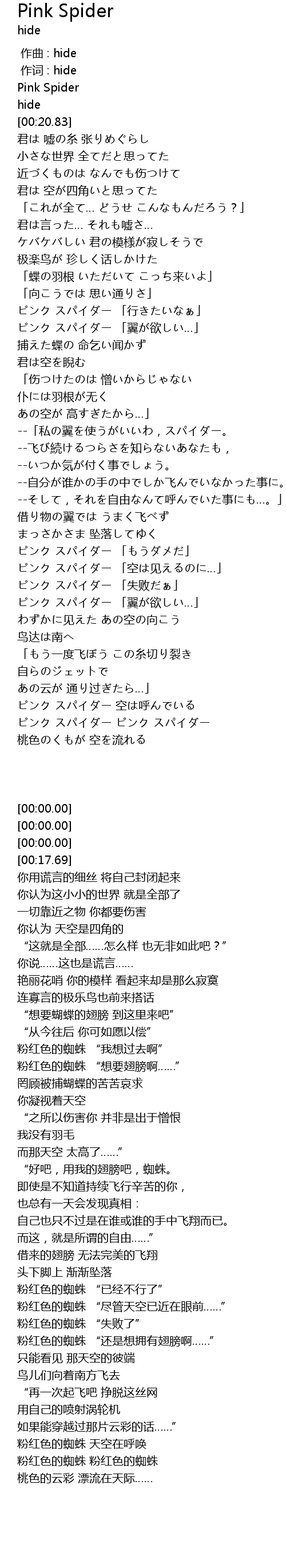 | [00:00.00] | Pink Spider |
