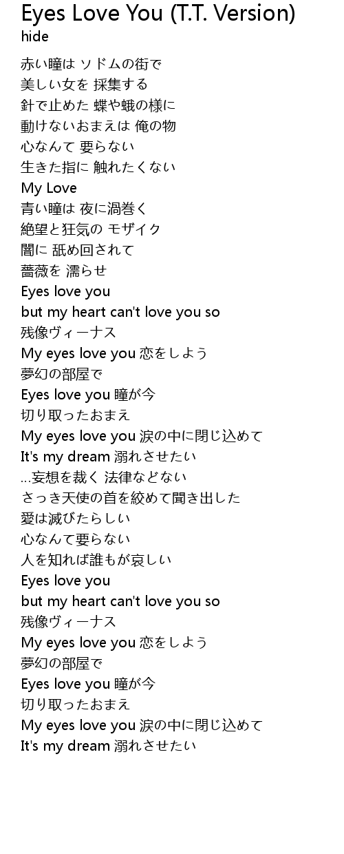 | [02:37.57] | My eyes love you 涙の中に閉じ込めて |