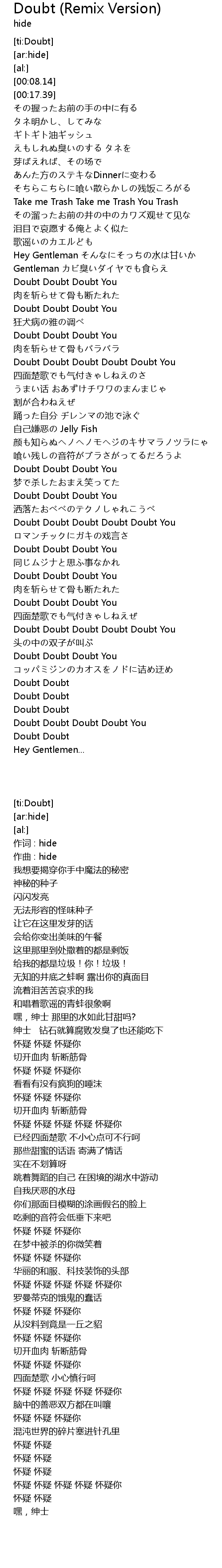 | [01:43.17] | Doubt Doubt Doubt You |