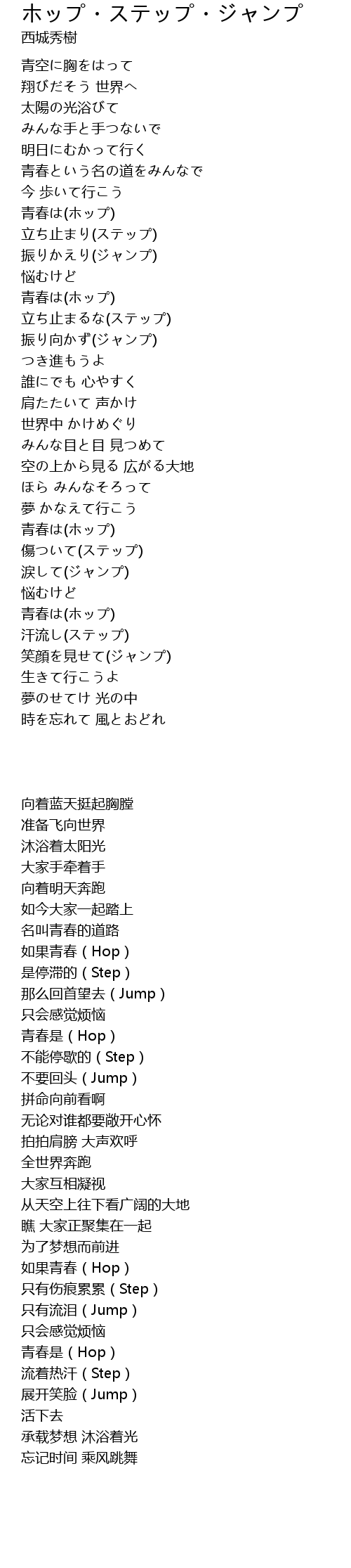 | [02:33.83] | 青春は(ホップ) |