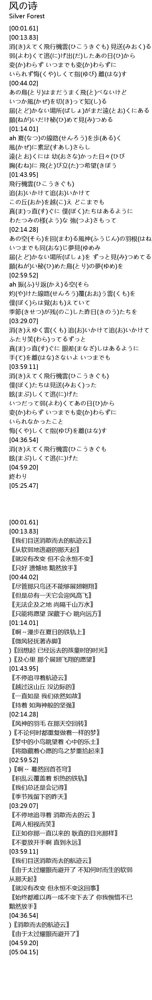 | [04:48.11] | 消(き)えてく飛行機雲(ひこうきぐも |