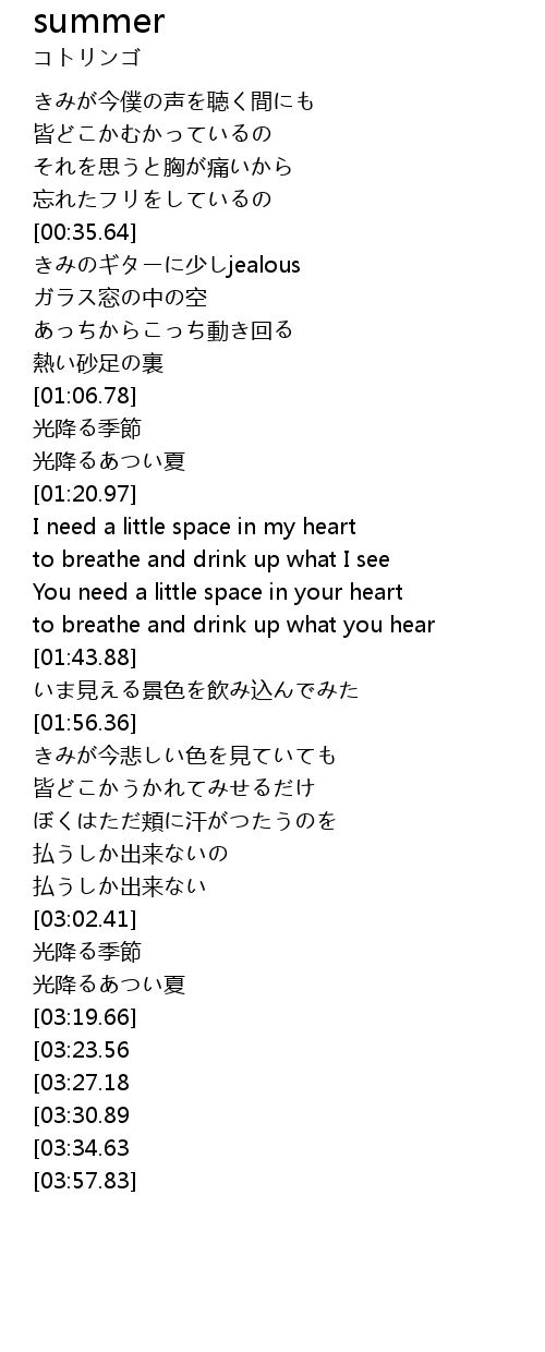 | [01:14.38] | 光降るあつい夏 |