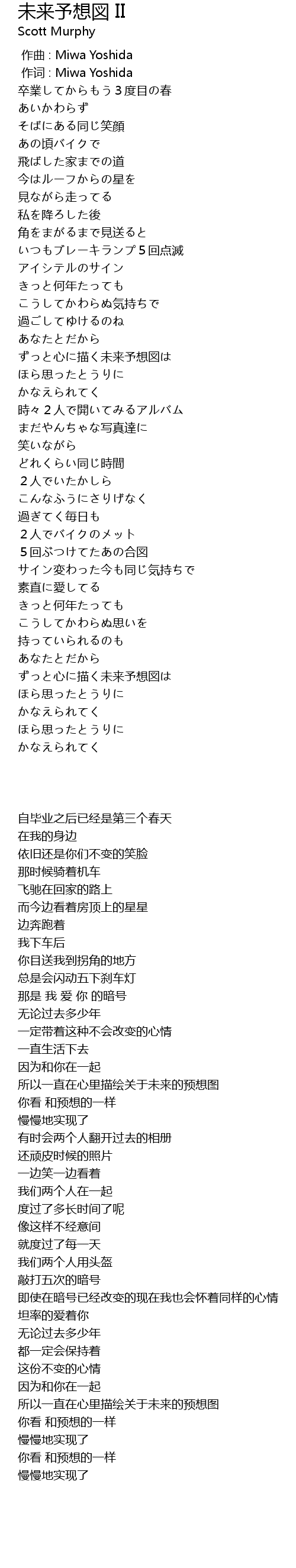 | [00:01.00] | 作词 : Miwa Yoshida |