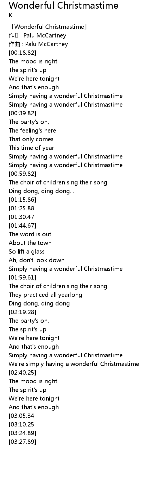 | [03:20.54][03:10.25] | Simply having a wonderful Christmastime |