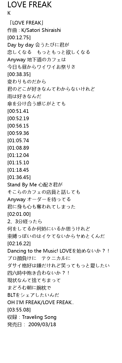 | [00:01.75] | LOVE FREAK |