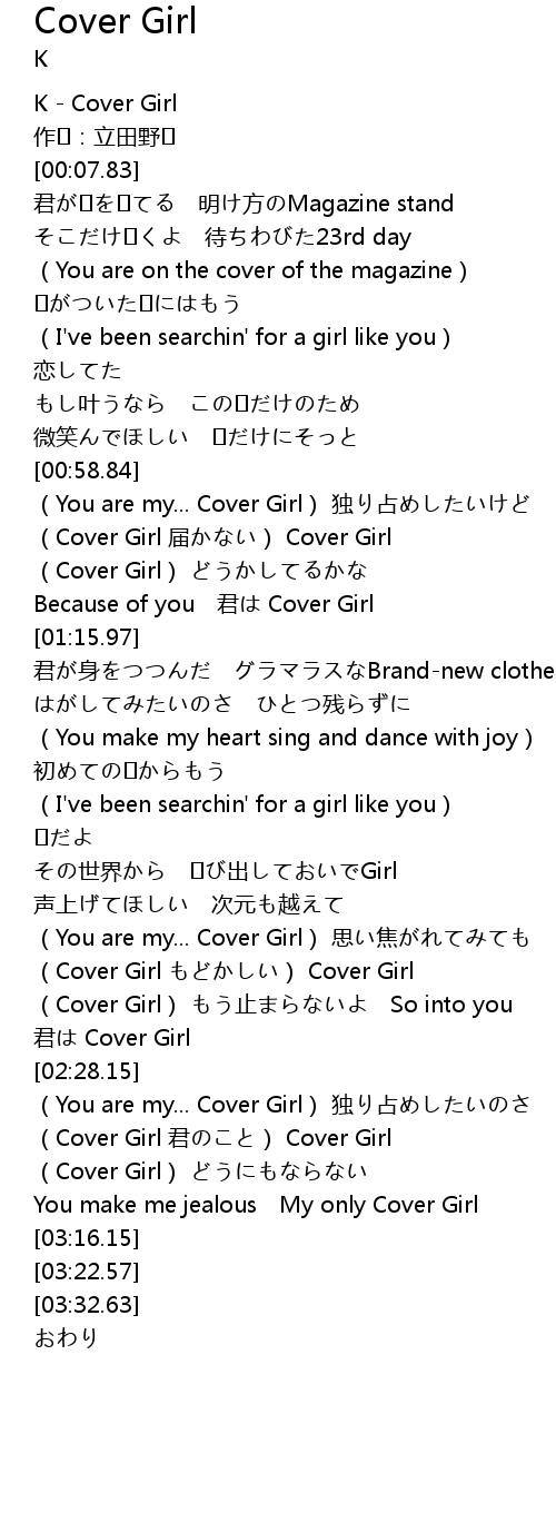 | [03:04.46] | Cover Girl jūn Cover Girl |