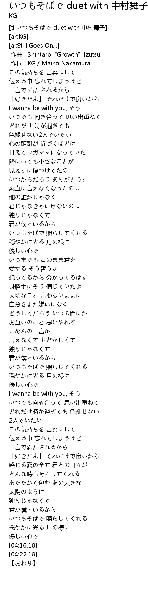 | [00:00.00] | zuò cí : KG Maiko Nakamura |