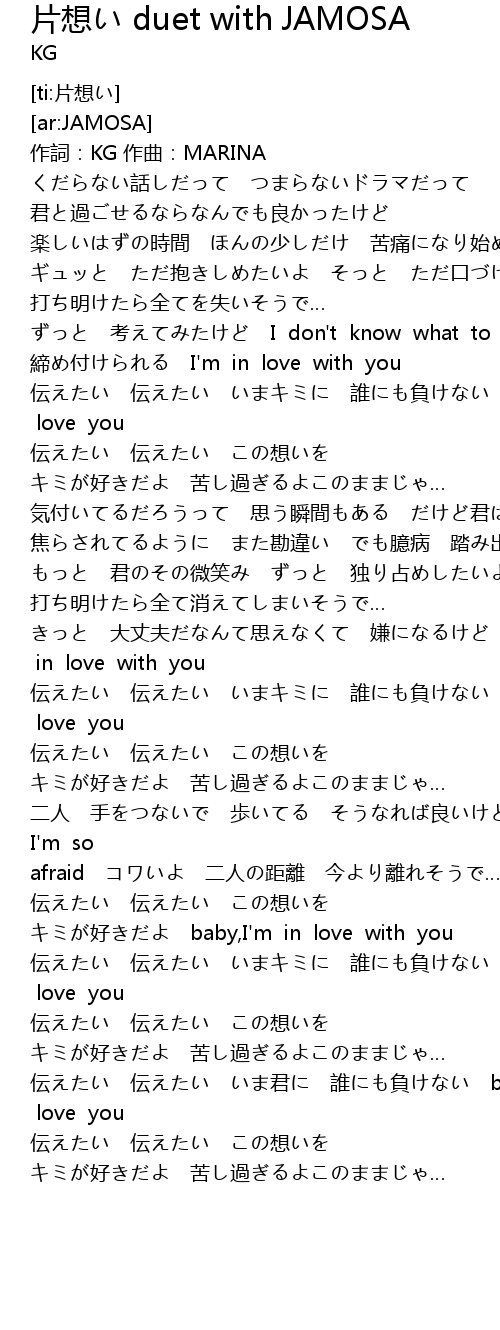 | [00:19.104] | 作詞:KG 作曲:MARINA |