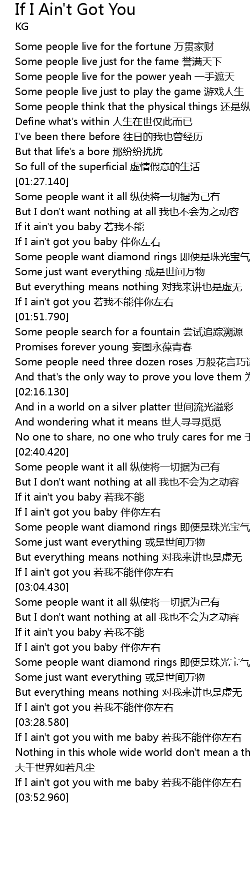 | [01:48.550] | If I ain't got you 若我不能伴你左右 |