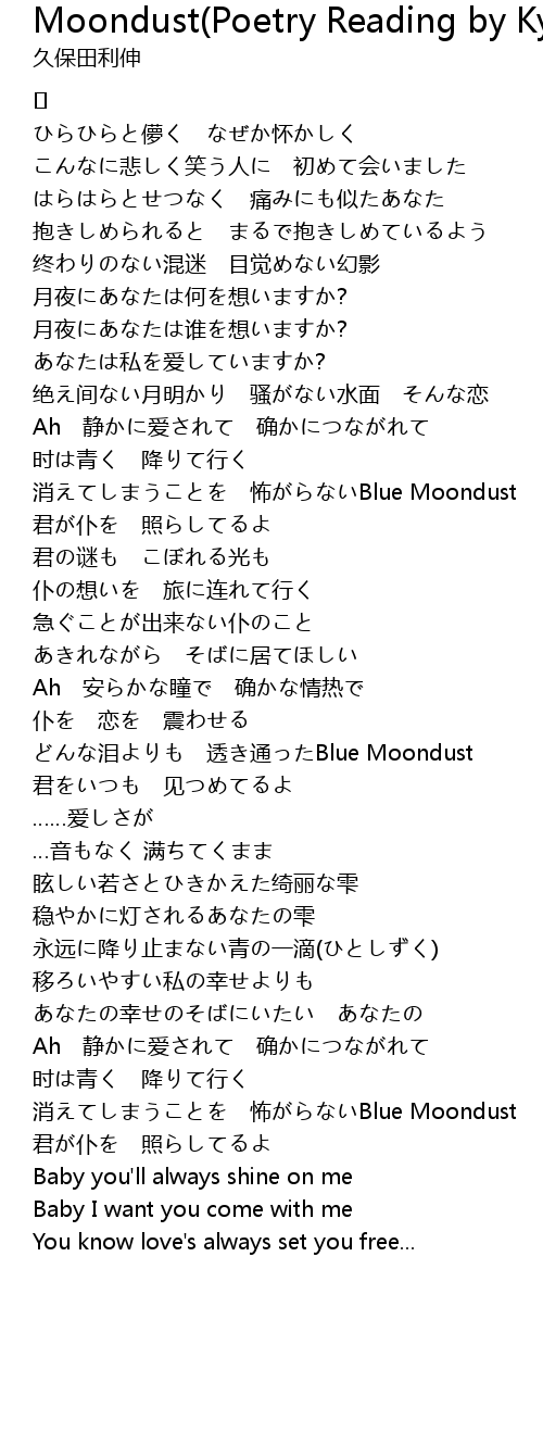 | Song | Moondust(Poetry Reading by Kyoko Koizumi) |
