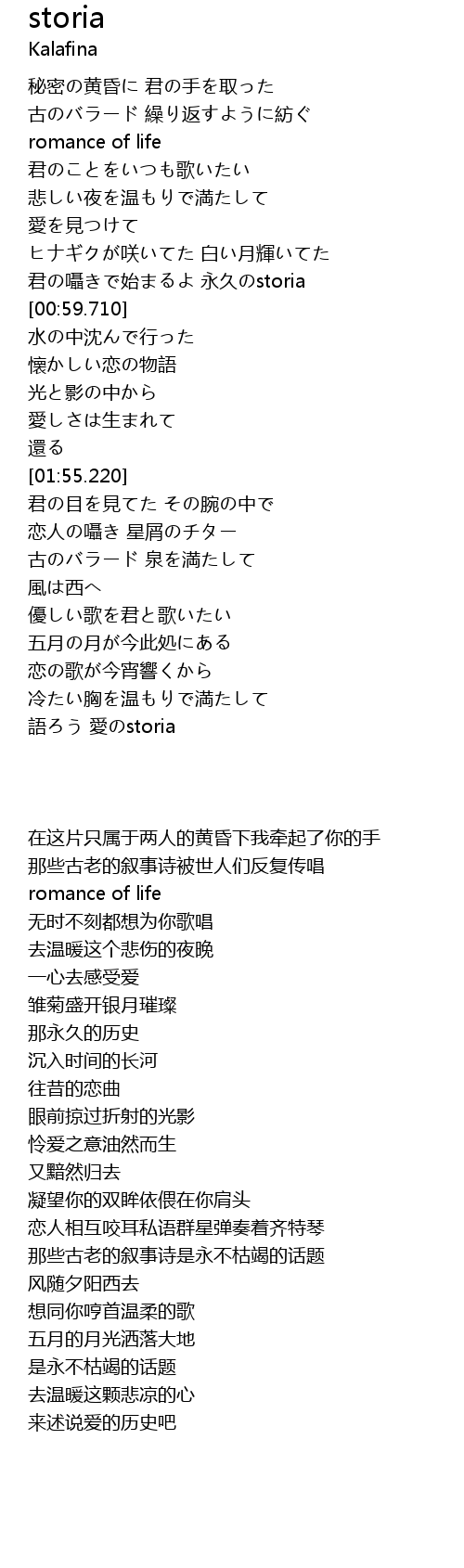 | [00:46.270] | 君の囁きで始まるよ 永久のstoria |