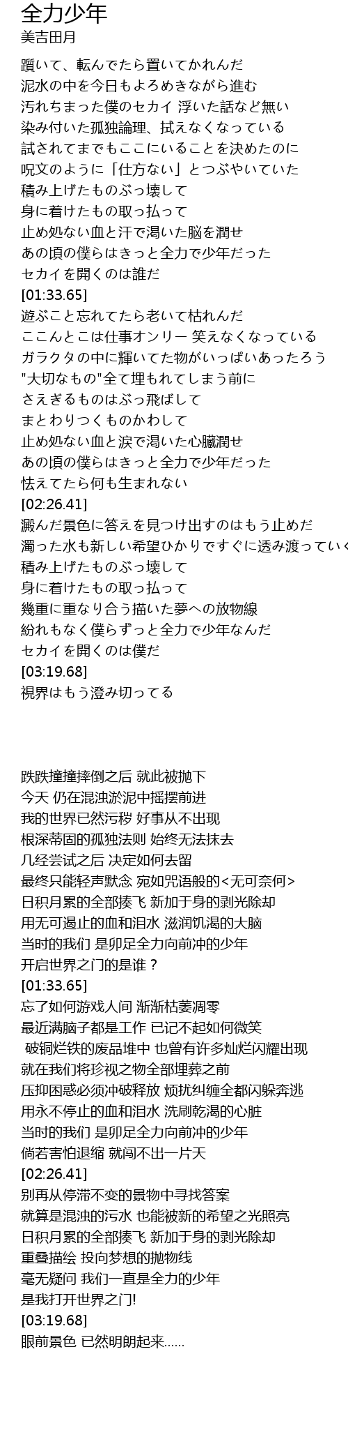 | [01:21.68] | あの頃の僕らはきっと全力で少年だった |