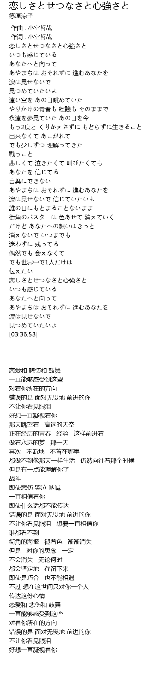 | [00:02.05] | 恋しさとせつなさと心強さと |