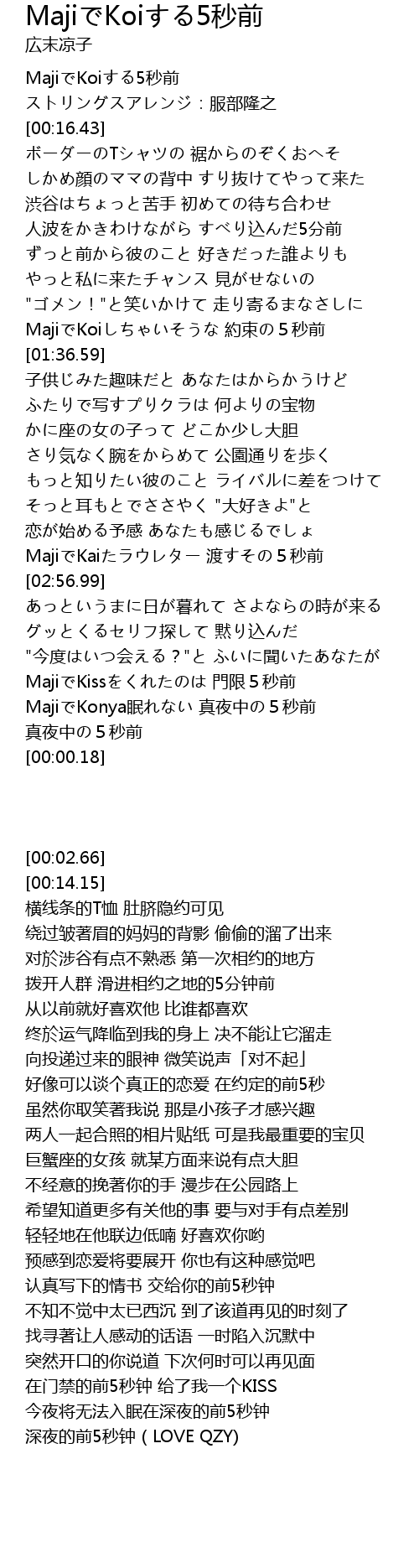 | [02:47.56] | MajiでKaiたラウレター 渡すその5秒前 |