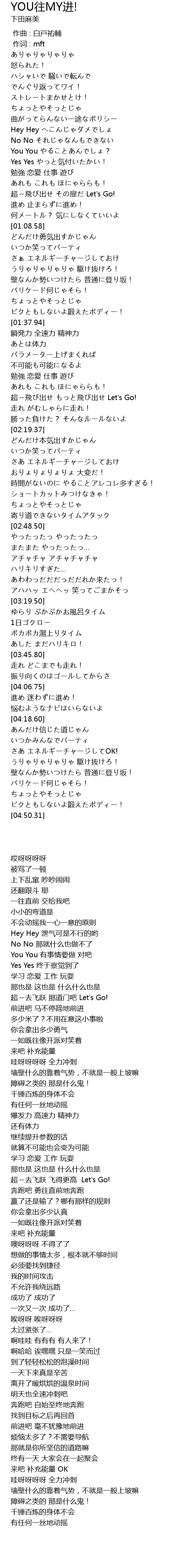 | Song | YOU往MY进! |