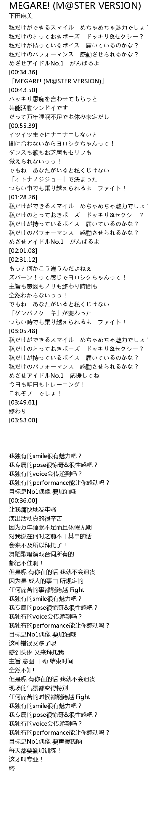 | [00:36.00] | 「MEGARE! (M@STER VERSION)」 |