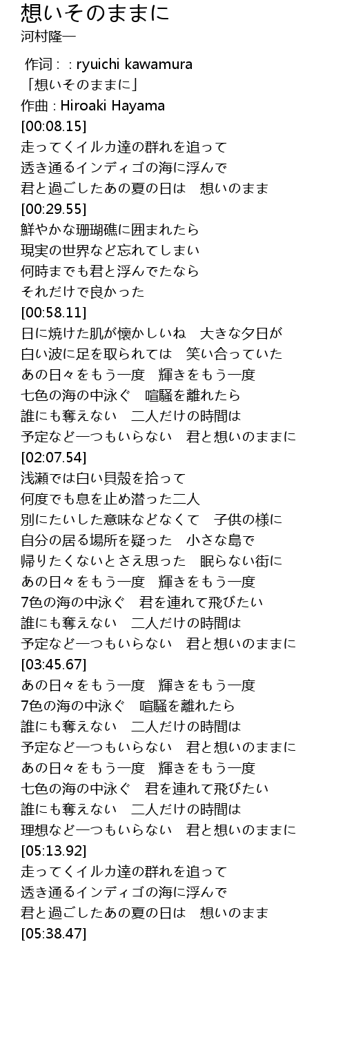 | [00:00.00] | 作词 : ∶ryuichi kawamura |