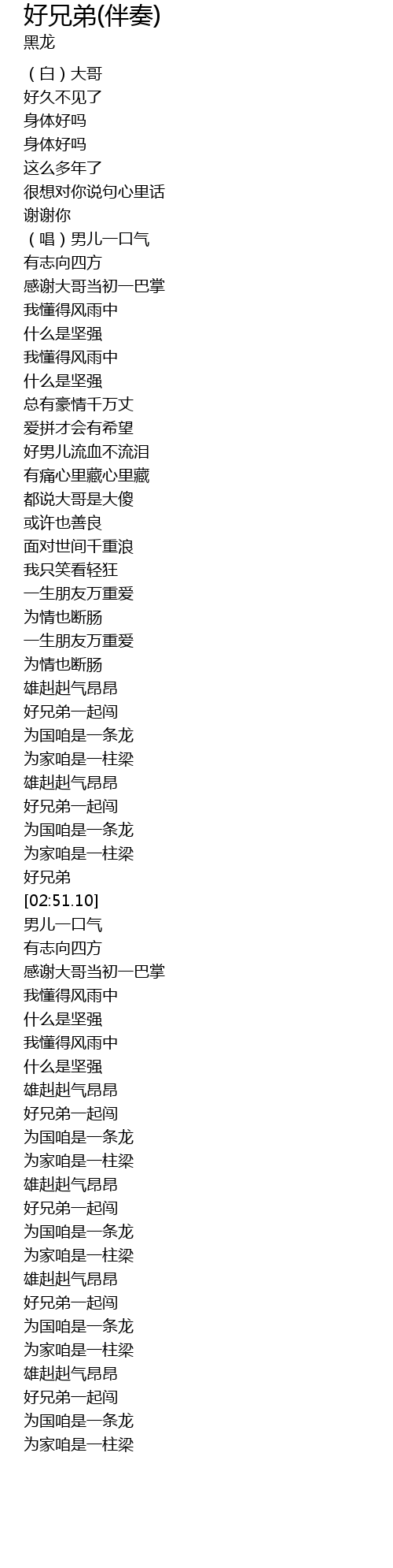 | [02:06.11] | hǎo xiōng dì yì qǐ chuǎng |