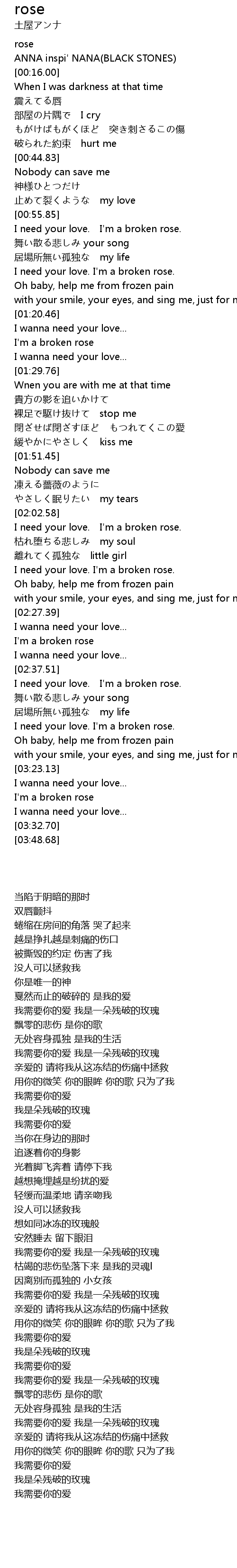 | [02:14.48] | I need your love. I'm a broken rose. |
