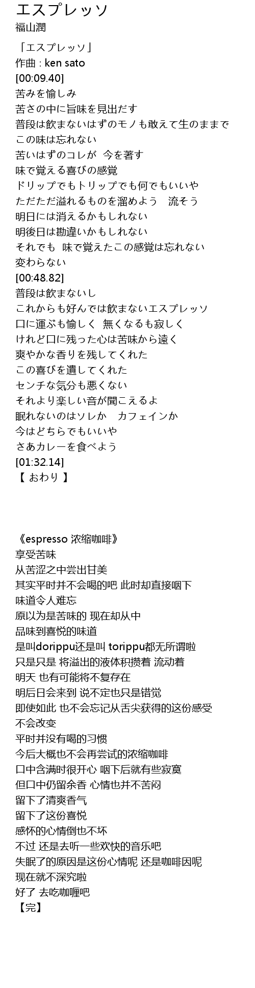 | [00:53.52] | これからも好んでは飲まないエスプレッソ |