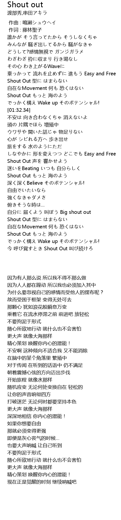| [02:17.10] | Shout Out 声を 響かせよう |