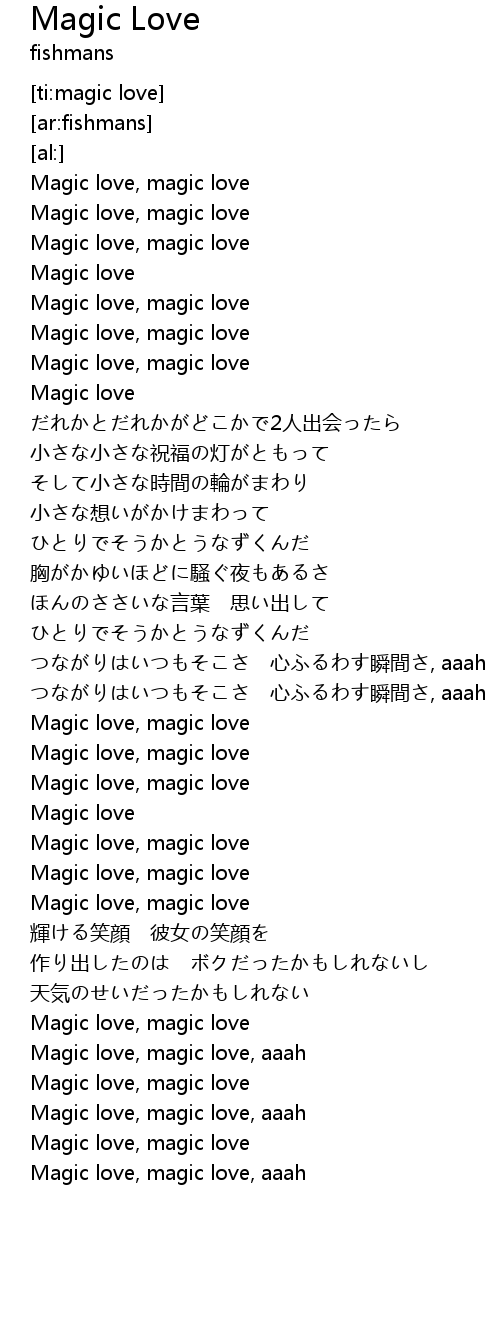 | [04:00.11] | Magic love, magic love, aaah |