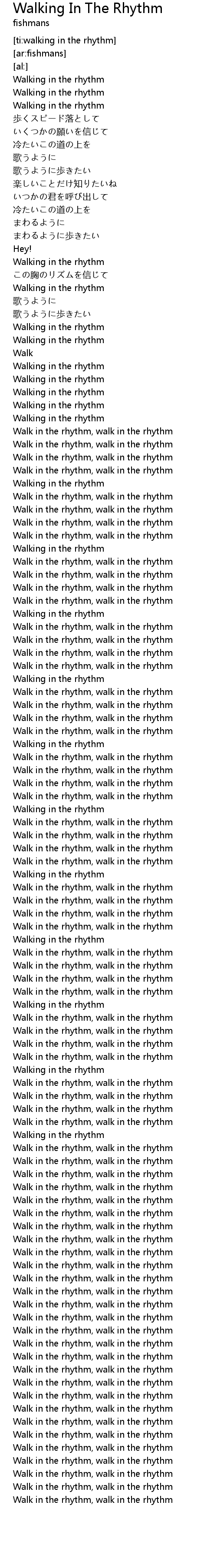 | [07:31.72] | Walk in the rhythm, walk in the rhythm |