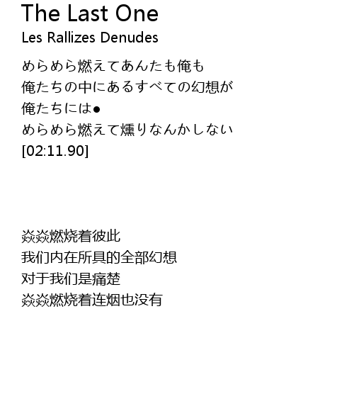 | [01:19.16] | めらめら燃えてあんたも俺も |