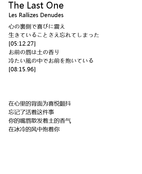 | [04:43.99] | 生きていることさえ忘れてしまった |