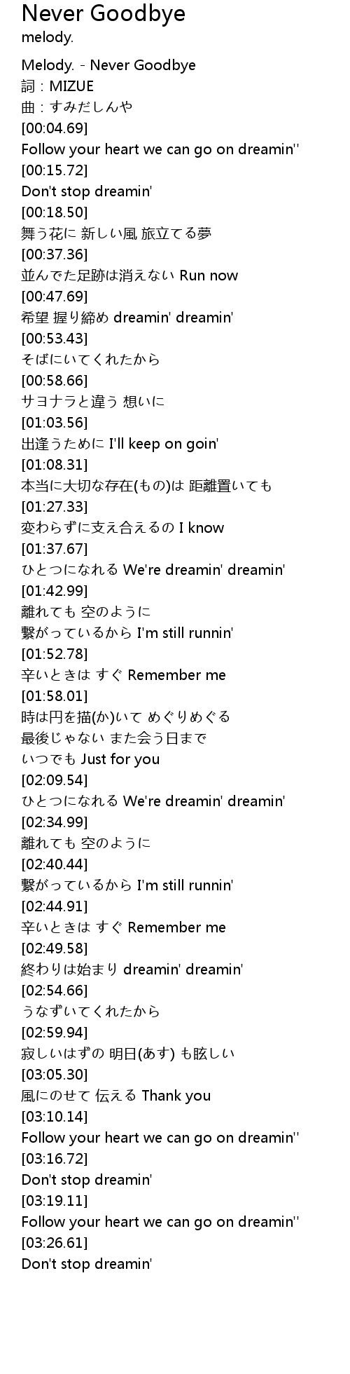 | [03:11.60] | Follow your heart we can go on dreamin'' |