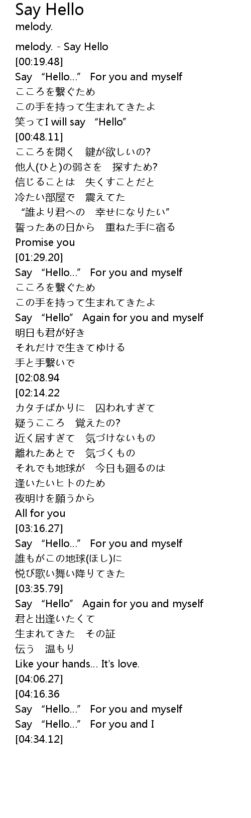 | [00:00.00] | melody. - Say Hello |