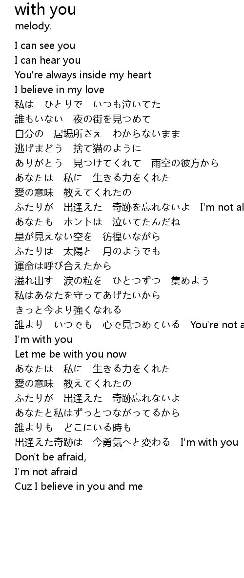 | 出逢えた奇跡は 今勇気へと変わる I'm with you | |
