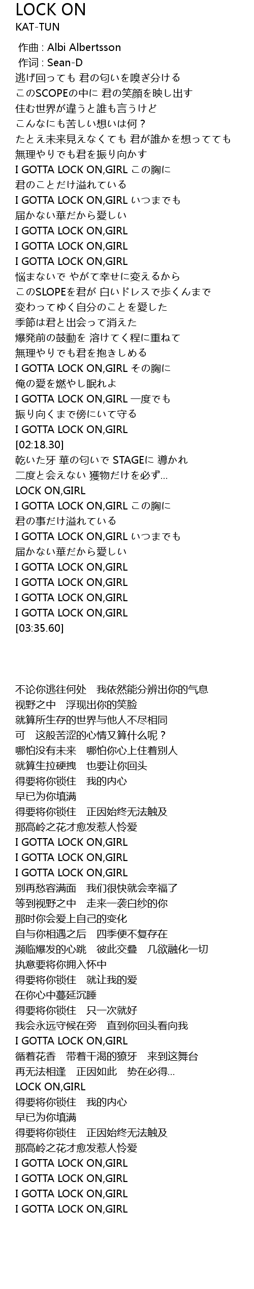 | [02:53.20] | LOCK ON,GIRL |