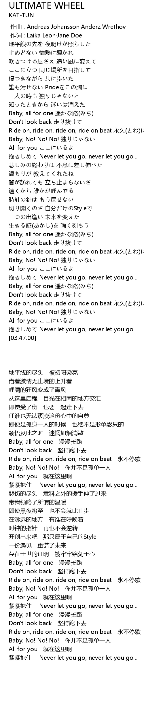 | [02:48.10] | Ride on, ride on, ride on, ride on beat yong jiu xiang |