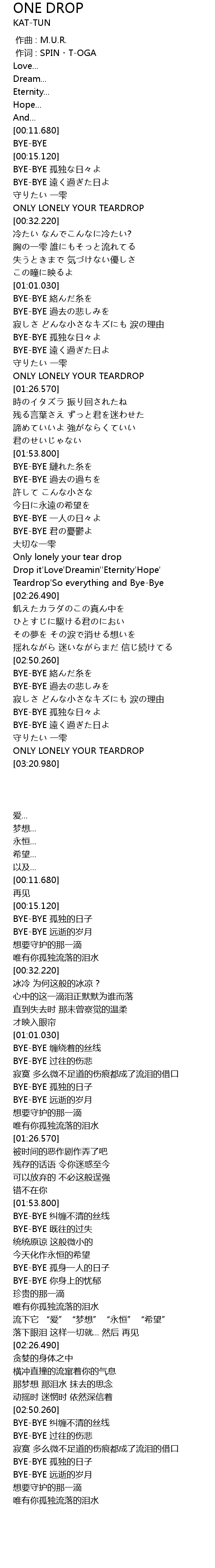 | [03:12.880] | ONLY LONELY YOUR TEARDROP |