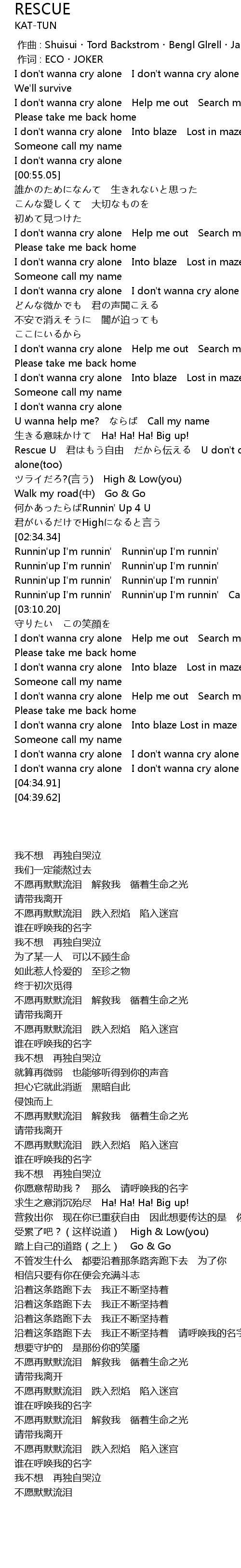| [00:36.42] | I don' t wanna cry alone Help me out Search my light |