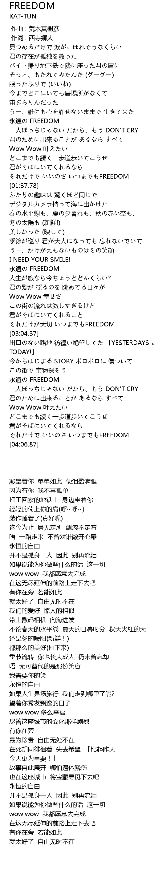 | [03:26.19] | yǒng yuǎn FREEDOM |