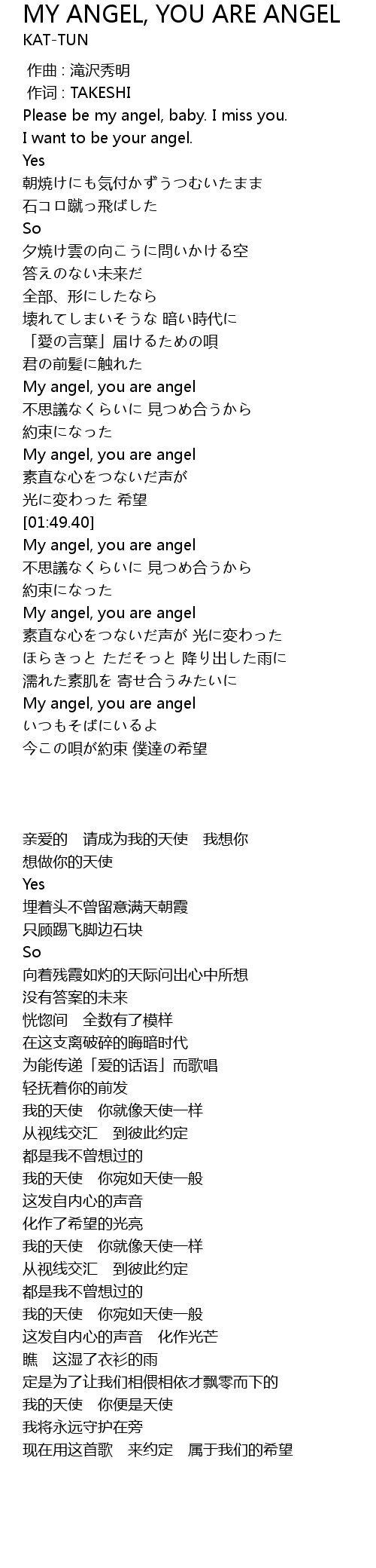 | [01:30.00] | My angel, you are angel |