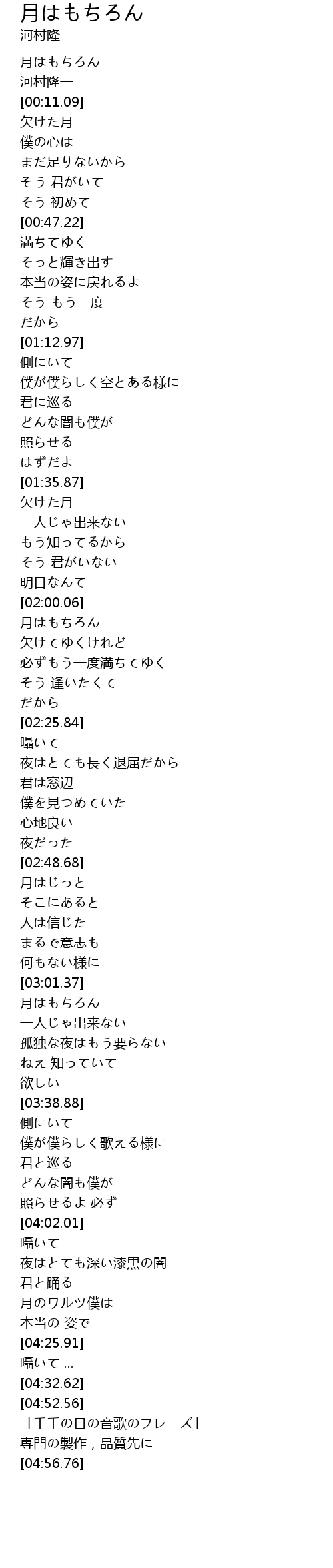| [03:14.51] | 月はもちろん |