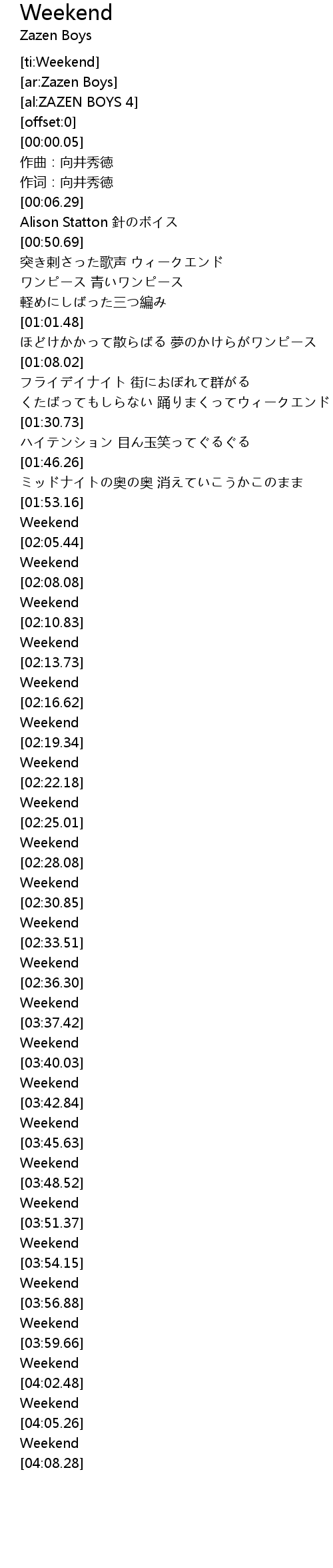| [00:51.50] | 突き剌さった歌声 ウィークエンド |