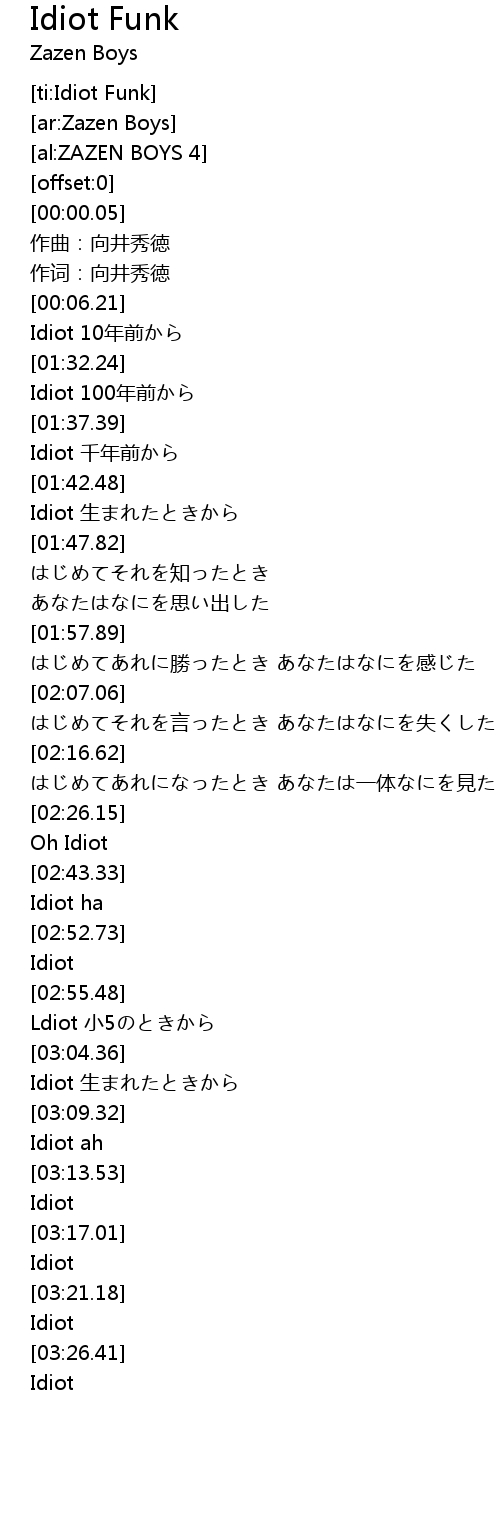 | [02:02.84] | はじめてあれに勝ったとき あなたはなにを感じた |