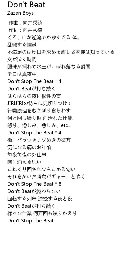 | [01:05.04] | Don't Stop The Beat * 4 |