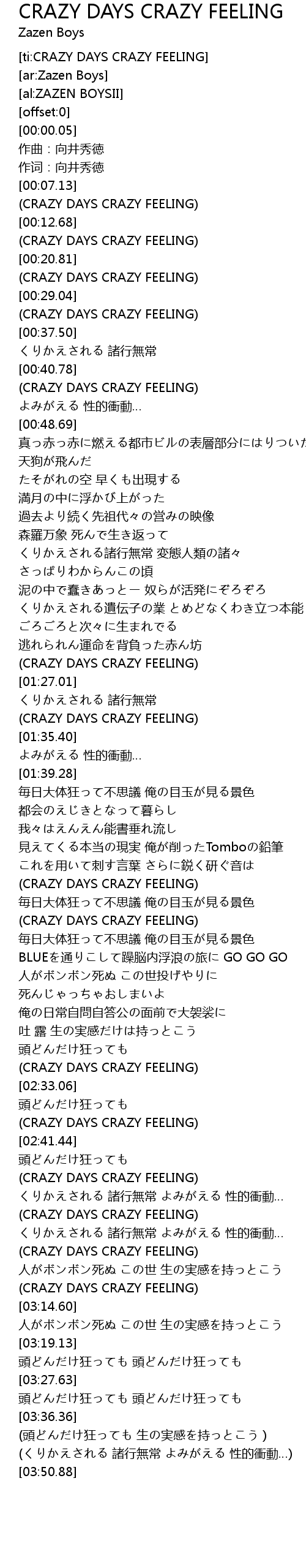 | [02:04.39] | (CRAZY DAYS CRAZY FEELING) |
