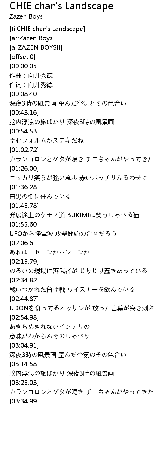 | [03:16.58] | 脳内浮浪の旅ばかり 深夜3時の風景画 |