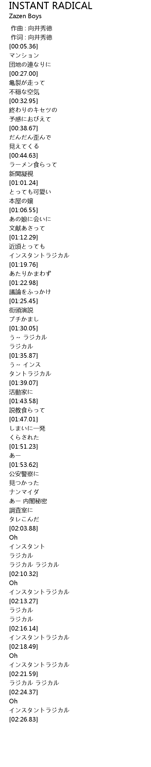 | [02:16.95] | インスタントラジカル |