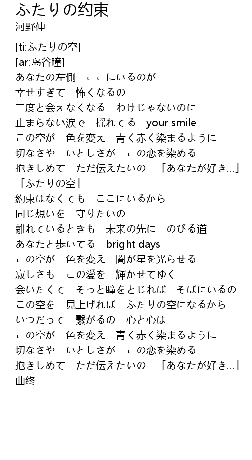 | [02:33.49] | この空を 見上げれば ふたりの空になるから |