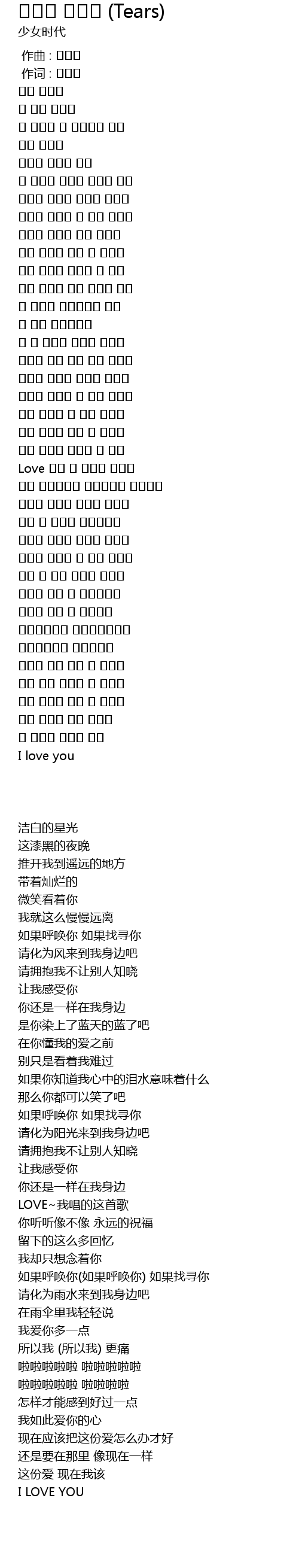 | Song | 그대를 부르면 (Tears) |