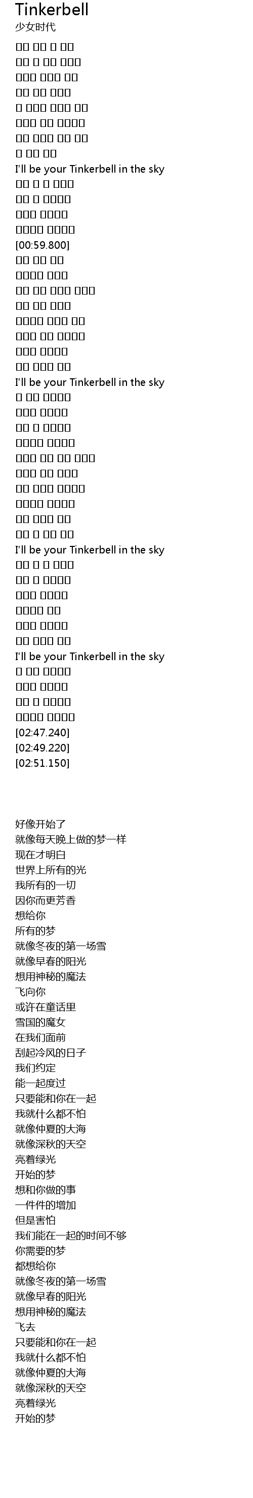 | [00:43.340] | I ll be your Tinkerbell in the sky |