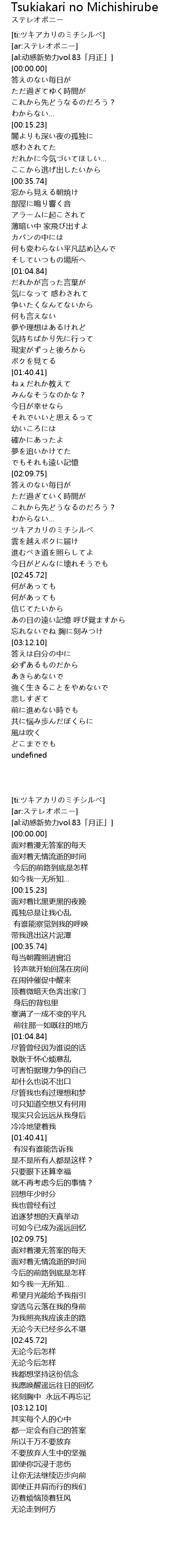 | [00:54.20] | 何も変わらない平凡詰め込んで |