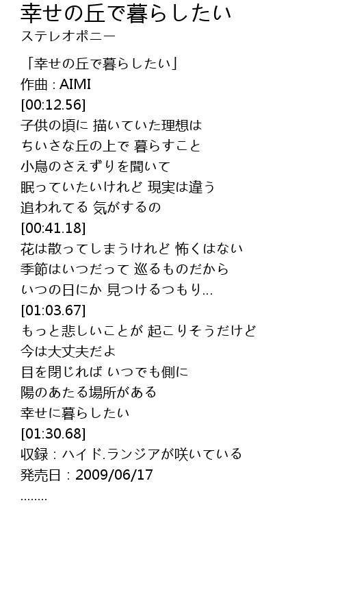 | [00:01.56] | 「幸せの丘で暮らしたい」 |
